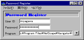 『Password Register』にID、パスワード、Netscapeのパスを予め登録しておけば、その後は『Password Register』を直接起動するだけでNetscapeまで立ち上げてしまいます。