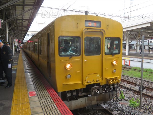 一方入って来た山陽本線の車両は、旧国鉄時代車両を中国地方のシンボルカラーである黄色に塗ったものです。