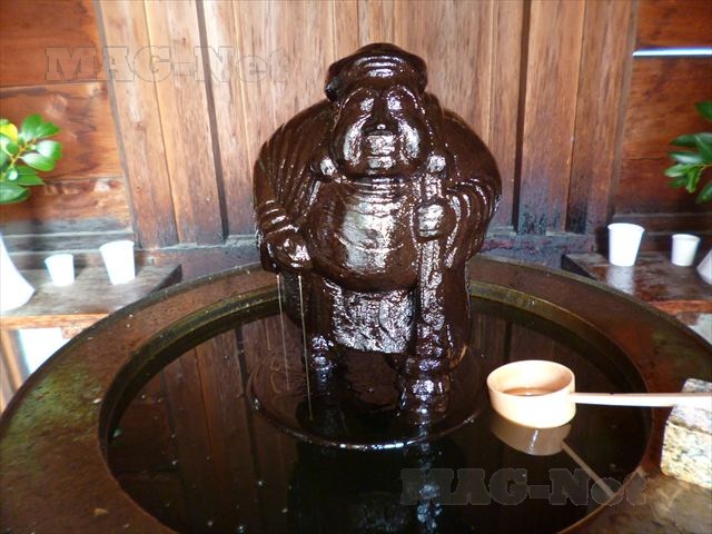 建物の中には大黒さんがあり、願い事をしながら大黒さんの頭から柄杓で真っ黒な油を注ぎます。