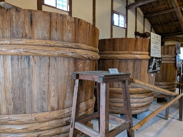 館内には麹室、仕込蔵、圧搾場で使われ道具、はっぴなどが保管されています。