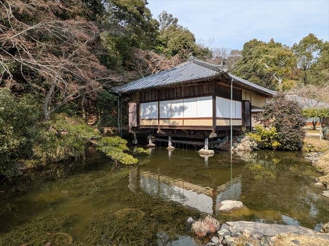 上屋敷跡を御涼所とすれば、門を出たところには茶室があります。