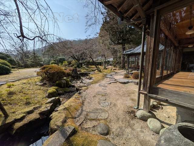屋敷からは小川を設けた回遊式の日本庭園を眺めることができます。