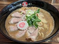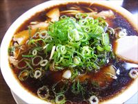 とんこつベースの醤油ラーメンで、チャーシューはこってりのバラと脂身の少ないモモを選ぶことができます。